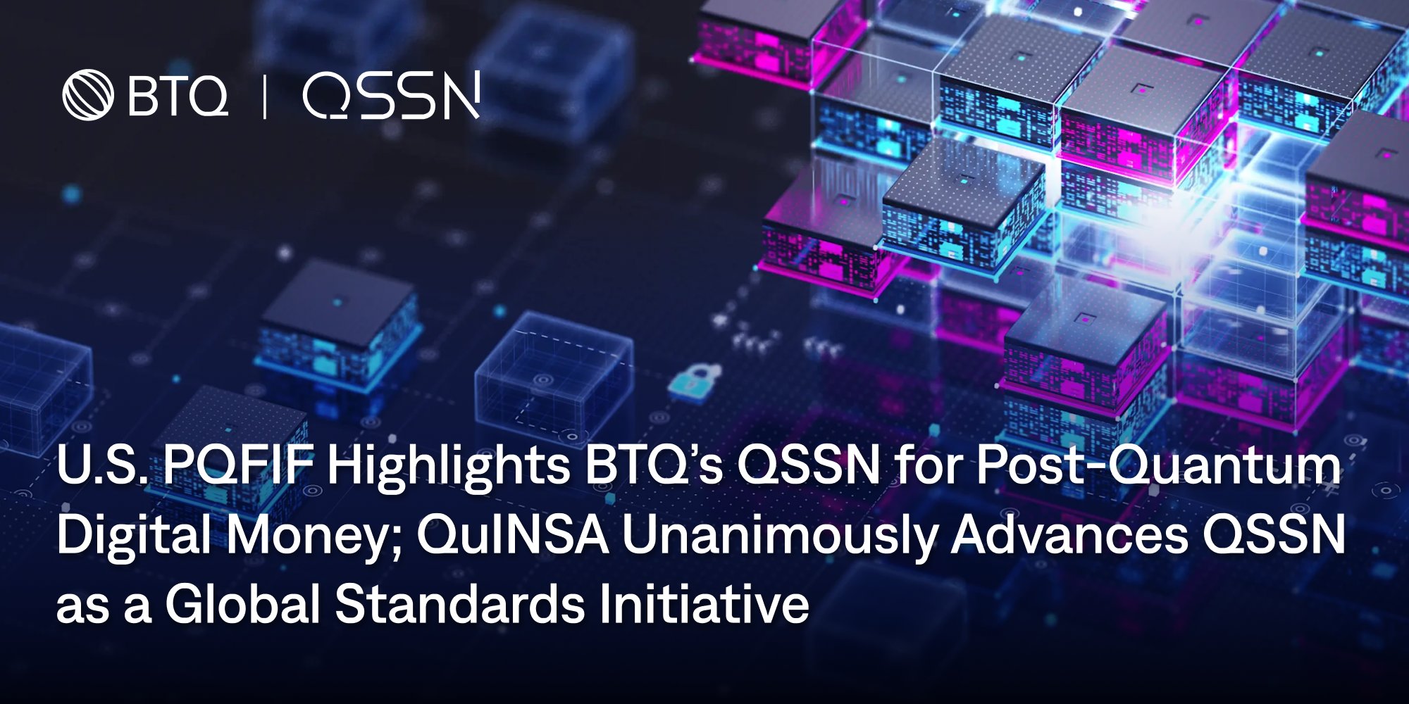 BTQ Technologies Corp. (BTQ) has announced that its Quantum Secure Stablecoin Network (QSSN) has been highlighted by the U.S. Post-Quantum Financial Infrastructure Framework (PQFIF) as a model for quantum-secure tokenized deposits. Concurrently, the Quantum Industrial Standard Association (QuINSA) has unanimously advanced QSSN as a global standard initiative, placing it on the ITU / ISO / ETSI / IEEE track.