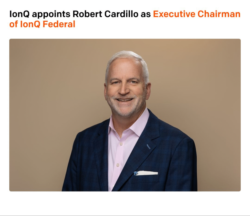 Robert Cardillo, who has served on IonQ’s Board of Directors since 2024, has been appointed as Executive Chairman of IonQ Federal. In this role, he will lead strategic operations and partnerships to enhance the use of IonQ’s applications for government agencies. Cardillo previously served as the Director of the National Geospatial-Intelligence Agency and as a national intelligence advisor to the President.