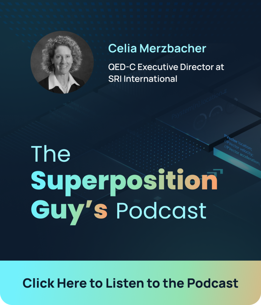 Celia: I’m Celia Merzbacher. I’m the executive director of the Quantum Economic Development Consortium or QED-C. QED-C has been around since 2018, 2019 more formally. We were established with some startup funding from the US government to create a consortium of stakeholders with the idea that there was really a need for an entity that was in between all of the activities going on in the private sector, big bets being made by large companies, startups coming out of research institutions and so on, and the government, which is making its own big investments.
