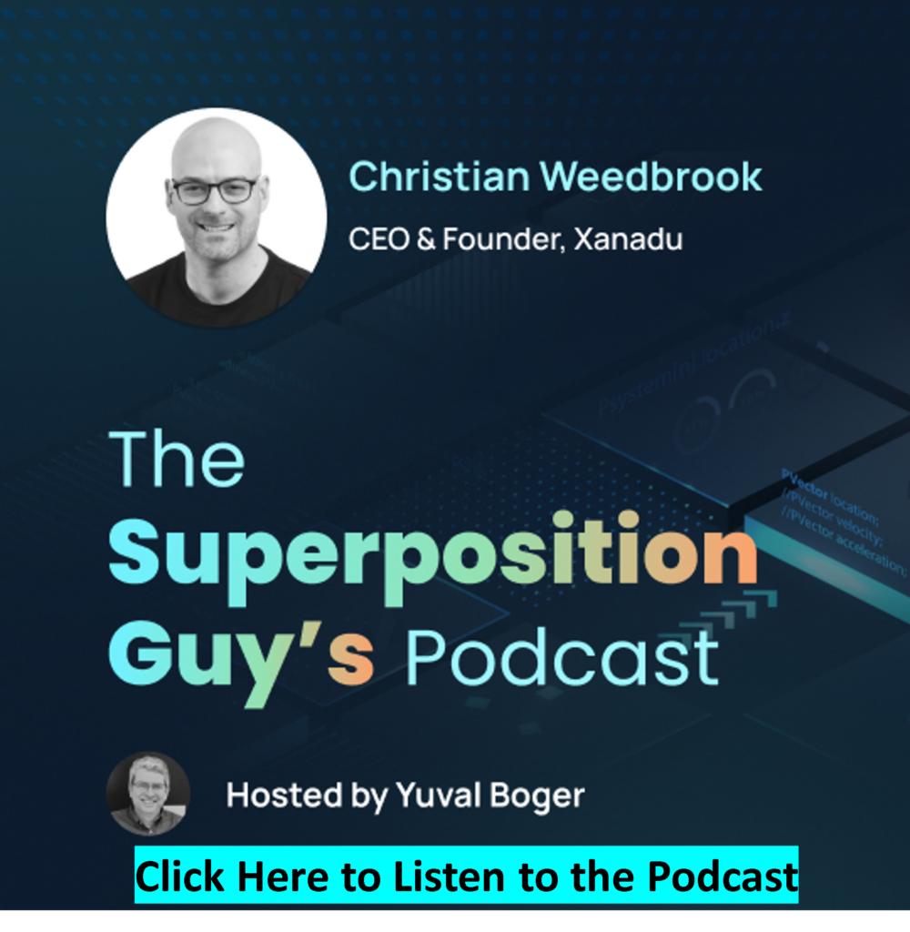 Yuval Boger interviews Christian Weedbrook, founder and CEO of Xanadu. They discuss Xanadu’s photonic approach to gate-based quantum computing, the advantages of room-temperature operation, and the company’s plan to scale through optical networking. Christian also describes PennyLane, photonic error correction, customer engagements, and Xanadu’s target of building a 500-logical-qubit system by 2029–2030. The conversation also touches on partnerships, manufacturing, likely early applications in chemistry and materials, and much more.
