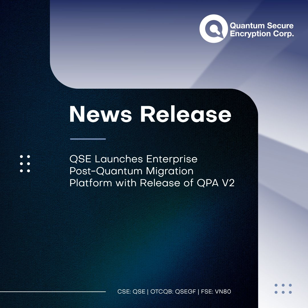 Based in Vancouver, Quantum Secure Encryption Corp. (CSE: QSE) specializes in secure data infrastructure and post-quantum encryption. The company’s focus remains on providing long-term data confidentiality for commercial, enterprise, and public-sector environments. With the release of QPA v2, QSE positions itself as a primary facilitator for organizations navigating the technical and operational challenges of the quantum transition. The platform is currently live and being utilized by a range of clients to formalize their post-quantum security roadmaps.